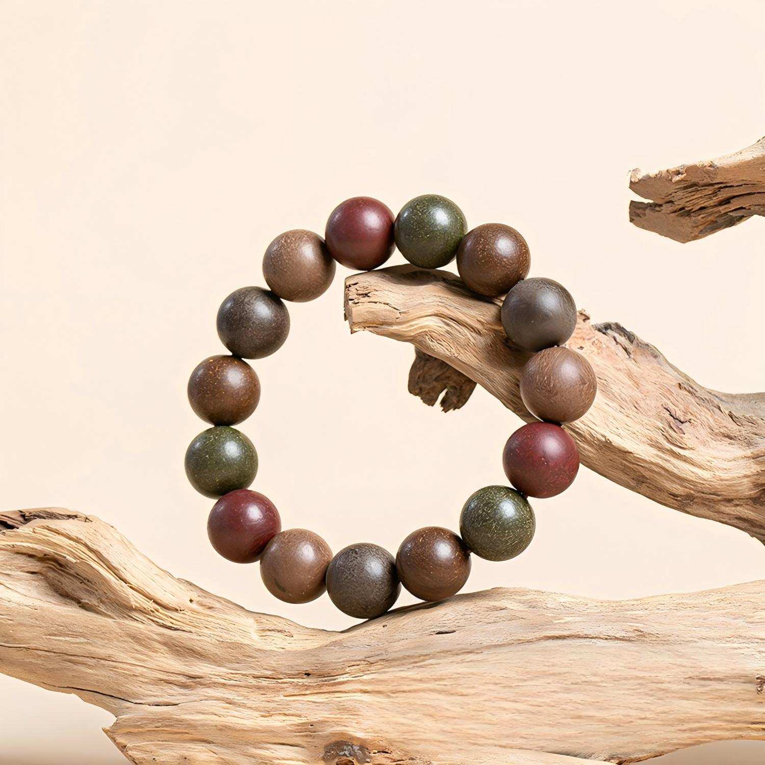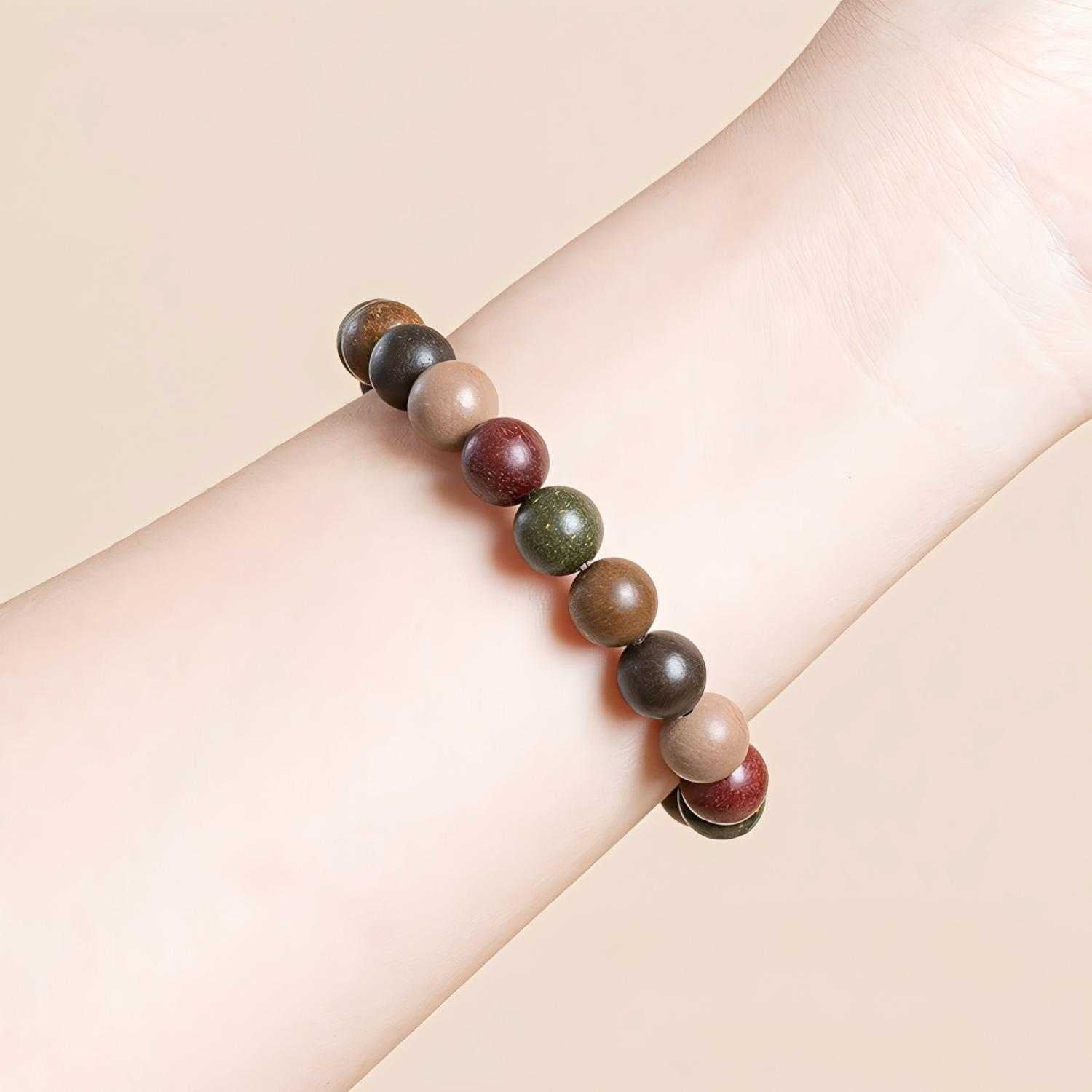 This bracelet is not made of wood. Each bead is formed from a natural botanical blend of Chinese herbs and spices, crafted through the heritage art of incense blending, then shaped and hand-finished into smooth, tactile beads.
